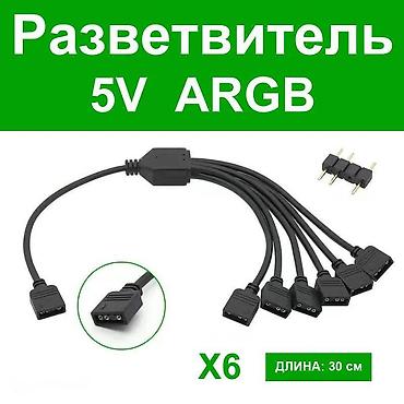 На одном конце гибкого провода находится разъем 3-pin 5V-D-G (ARGB), для подключения к контроллеру подсветки, а на другом уже 4 (или 6) разъемов 3-pin 5V-D-G (ARGB),