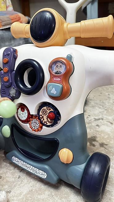 - 5‑в‑1: опора для первых шагов и интерактивная панель для игр сидя.