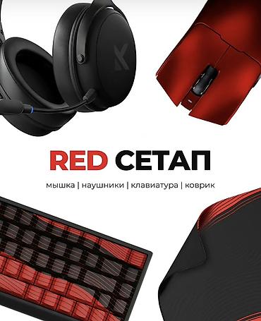 RED СЕТАП — полноценный игровой комплект в красно‑черной стилистике: мышь, клавиатура, наушники и коврик.