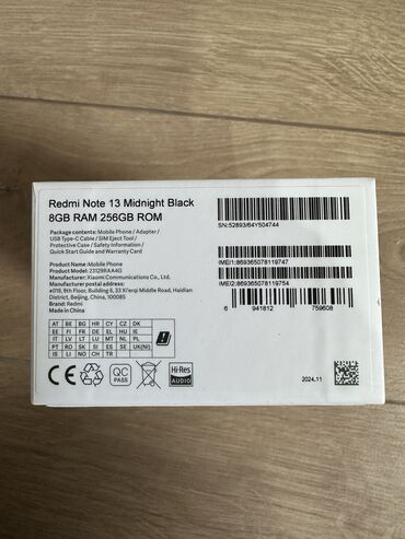 Смартфон Xiaomi Redmi Note 14 полный комплект Ключевые особенности: - Основная камера 108 МП с ИИ: детальная съёмка, улучшение фото и видео в автоматическом режиме. - Батарея 5500 мА·ч (typ): дли...