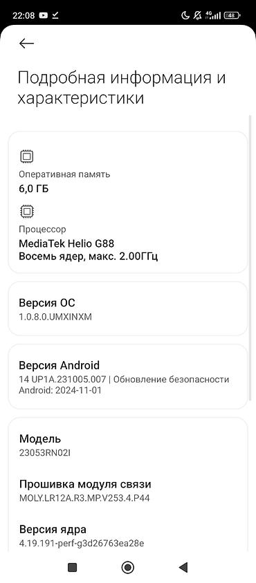 - Платформа: Android 14 с оболочкой Xiaomi HyperOS (скриншот версии 1.0.8.0). Актуальные обновления безопасности.