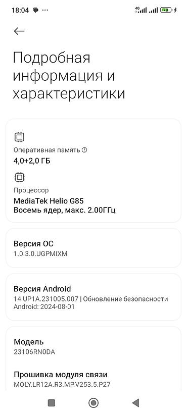 - ОС: Xiaomi HyperOS 1.0.3.0 (UGPMIXM) на базе Android 14 (версия 14 UP1A.231005.007).
