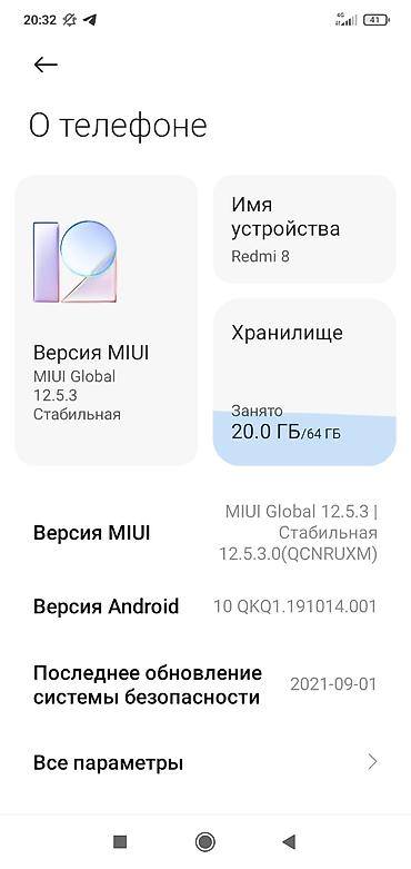Модель Редми 8 Зарегистрирован состояние 10/10 идеально Память 64Гб Оперативная 4Гб Цена 4000с Без торга и обмена Есть доставка по городу 200.300.400сом