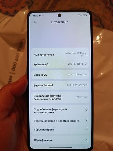 - Модель отображается в системе как Redmi Note 12 Pro 5G