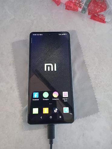 Смартфон Xiaomi (MI) с большим безрамочным дисплеем и центральным вырезом под фронтальную камеру. На экране MIUI, установлены популярные приложения (Facebook, Телефон, Instagram, TikTok, Telegram и др.). Сенсорные навигационные кнопки внизу экрана.