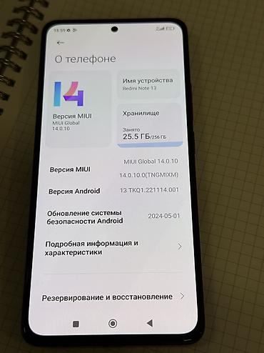 - Производитель: Xiaomi Communications Co., Ltd.; модель серии Redmi Note 13 (указано в настройках).