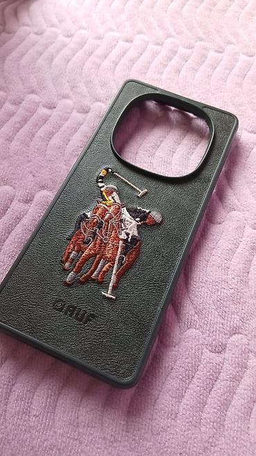 - Комплект: фирменная коробка Redmi Note 15; защитный чехол темно‑зеленого цвета с тиснением/вышивкой (рисунок игрока в поло), вырез под большой модуль камер