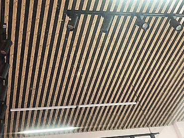 Реечный потолок из деревянных ламелей с интегрированным освещением -