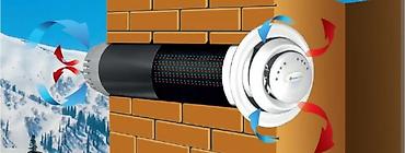 Стенной приточно‑вытяжной вентилятор с рекуперацией тепла. Описание: - Компактная децентрализованная система вентиляции для квартиры, дома или офиса. Монтаж в наружную стену через круглый канал. -...