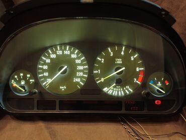 Панель приборов (щитовка) для автомобиля. Особенности: - Аналоговые спидометр до 240 км/ч и тахометр до 8000 об/мин. - Центральный блок с небольшим дисплеем и двумя дополнительными шкалами (темпер...