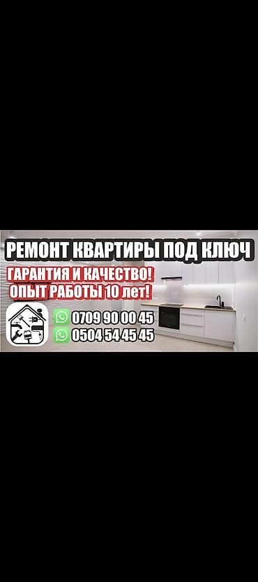 Ремонт под ключ жасайбыз. Электрика Сантехника Обои жана башка жумуштарды жасайбыз. Ишибизге так дана жооп беребиз. Жер Уй, Квартира, Электро Инстурментибиз бар. Колдон келсе дизайн тараптан ке...