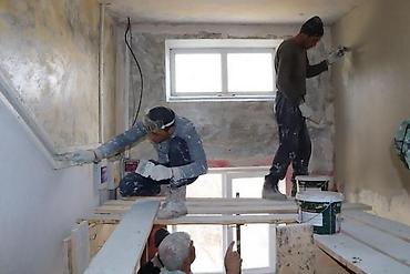 - Комплексная отделка под ключ: подготовка основания, удаление старой краски/штукатурки, заделка трещин, выравнивание, грунтование, шпаклёвка, покраска стен и потолков.
