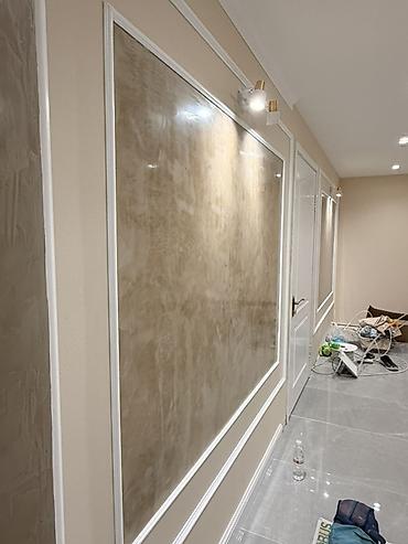 - Стены: декоративные штукатурки (в т.ч. фактурные и венецианские), окраска, устройство молдингов и декоративных панелей, точечная подсветка панелей.