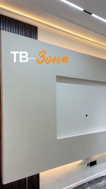 - Стены: выравнивание, декоративные панели/рейки, окраска, монтаж ТВ‑зон с подсветкой и нишами, лепные молдинги.