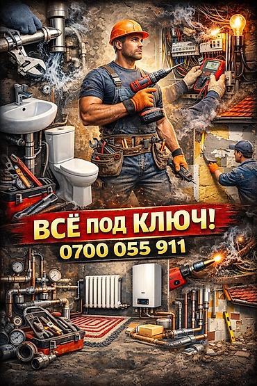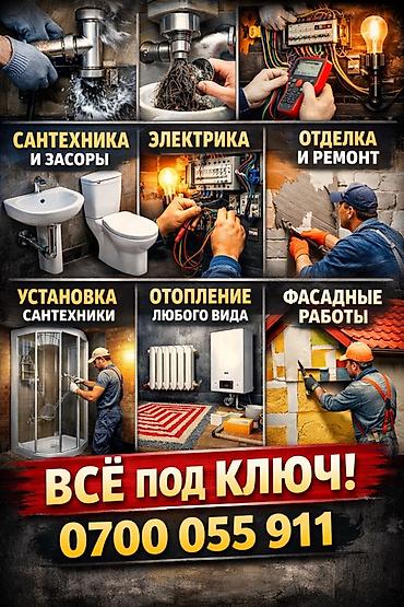 - Сантехника: монтаж и замена труб, установка раковин, унитазов, душевых кабин, устранение протечек и засоров.