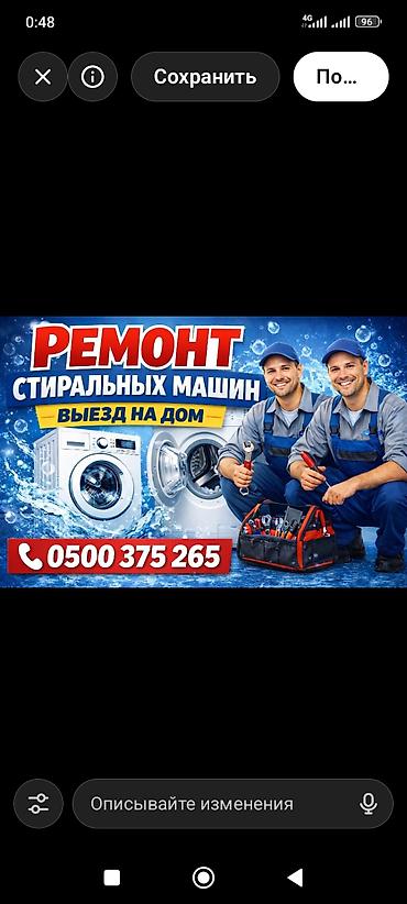 🚀 Профессиональный ремонт стиральных машин в Бишкеке ✅ Выезд мастера в течение 1 часа ✅ Опыт более 10 лет ✅ Ремонт любой сложности на дому ✅ Гарантия до 12 месяцев ✅ Работаем без выходных 🔹 Диагн...