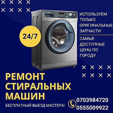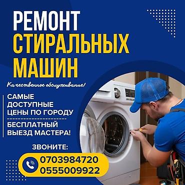 Ремонт стиральных машин любой сложности Выезд мастера на дом по Бишкеку Без дополнительных условий! К вашим услугам ремонт стиральных машин всех известных марок: Ariston, Beko, Bosch, Electrolux, H...