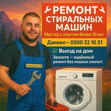 🔧 РЕМОНТ СТИРАЛЬНЫХ МАШИН В БИШКЕКЕ 🔧 📞 | — Даниил 🧰 Мастер с опытом более 10 лет! — Ремонт всех марок: LG, Samsung, Indesit, Bosch и др. — Выезд на дом по Бишкеку — Быстро, качественно, с гарант...