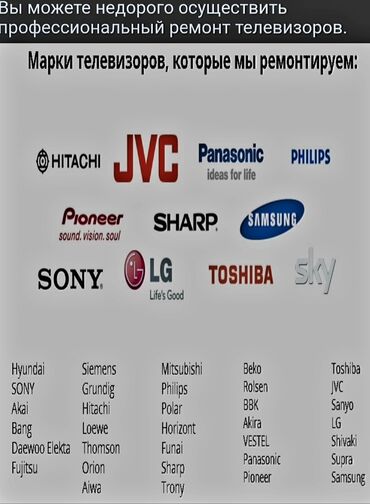LG, Sony, Samsung, Rosso, Philips, Toshiba, Panasonic, Ясинь, Yasin, Skyworth, Blaupunkt, Nokia, Hisense, Sharp, Thomson, Toshiba, TCL, Xiaomi и др.
