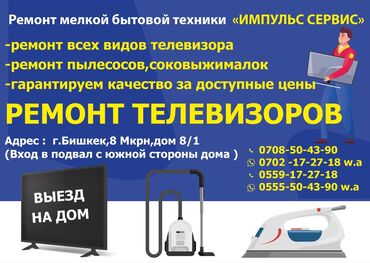 Ремонт Телевизоры С гарантией С выездом на дом Радиотелеателье Импульс Сервис Бесплатная диагностика Ремонт телевизоров и бытовой техники Ремонт всех видов телевизоров Гарантируем качество за доступные цены. Адрес 8 мкр 8/1. Большой опыт работы Ремонт плазменных телевизоров. Ремонт LG. Ремонт Sony. Ремонт Panasonic. Ремонт Samsung. Ремонт Yasin. Ремонт. Higher. Ремонт TSL. Ремонт Led ЖК. ремонттв, ремонт телевизоров,плазма плазменные, телевизоры, ремонт, телевизоры и мелкой бытовой техники адрес 8 микрайон дом 8/1 вход с южной стороны в подвал