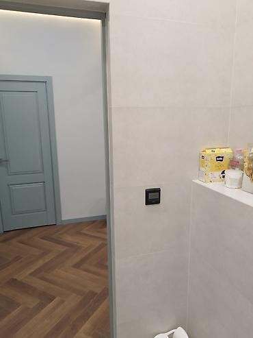 - Выключатель/терморегулятор на стене, подготовка под монтаж сантехники и аксессуаров.