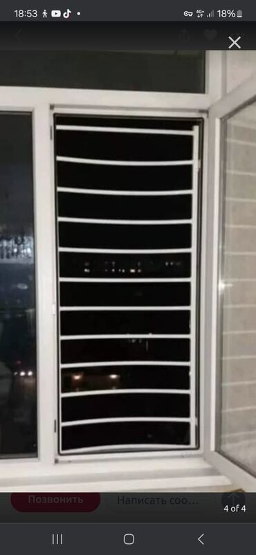 - Конструкция: металлическая рама с частыми горизонтальными прутьями; одна или две створки с поворотным или поворотно‑откидным механизмом для проветривания.