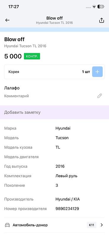 - Применение: Hyundai Tucson TL, 3‑е поколение, 2016 г., левый руль.