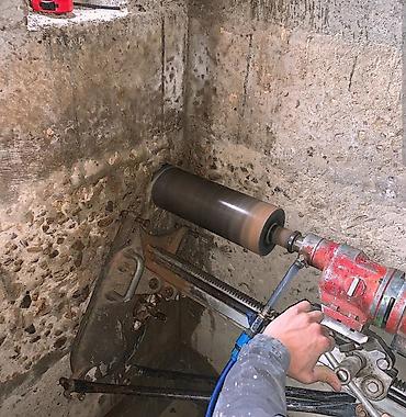 - Алмазное сверление (коронками) отверстий под инженерные коммуникации: вентиляция, водоснабжение, канализация, электрика.