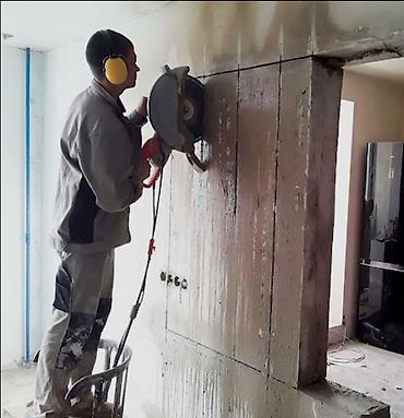 - Резка проемов в стенах и перекрытиях (дверные, оконные, технологические).