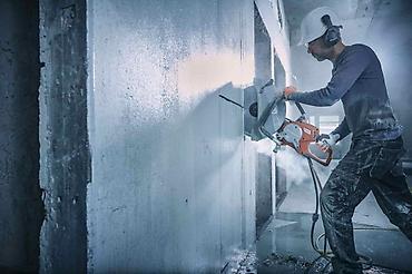- Резка стен, перекрытий и проёмов под двери/окна, штробы и выемки в бетоне, железобетоне, кирпиче, блоках.