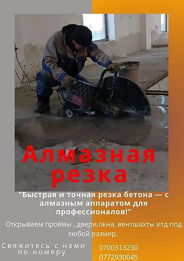 Алмазное резание и бурение, г. Бишкек. - Точные проемы и отверстия в бетоне, железобетоне, кирпиче. - Резка стен, перекрытий, проемов под двери/окна, штробы. - Алмазное бурение каналов под коммуни...