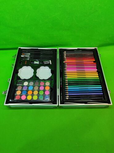 Особенности товара: все полностью укомплектовано в удобный металлический чемоданчик, полный набор для творчества детей от 2 лет🙂