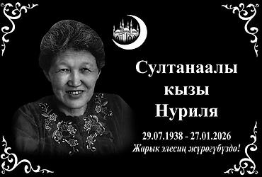- Комплексное оформление: портрет, ФИО, даты, эпитафии на русском/киргизском, декоративные элементы.