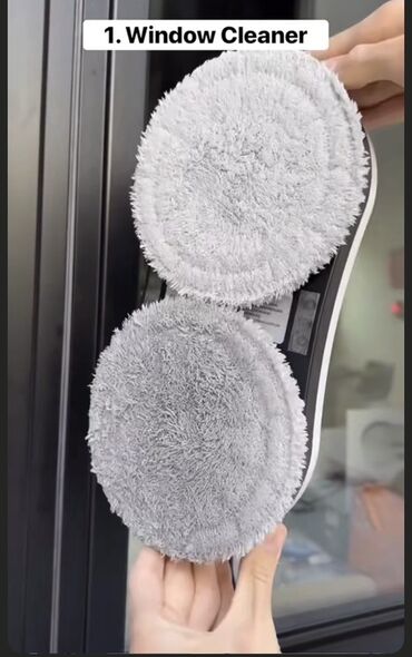 - Присоска к стеклу и движение по поверхности с двухвальными круглыми насадками из микрофибры для полировки без разводов.