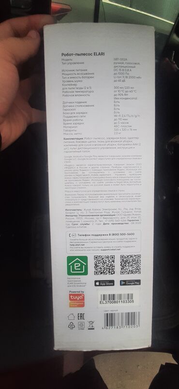 - Управление: ручное, голосовое и дистанционное; поддержка Wi‑Fi 2.4 ГГц (b/g/n), работа через приложение ELARI SmartHome; совместим с голосовыми ассистентами