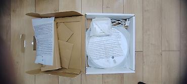 - Комплектация по фото: робот-пылесос, зарядная база с кабелем питания, модуль/резервуар для воды с салфеткой, документация, оригинальная коробка.