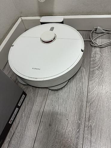 - В комплекте: робот‑пылесос, зарядная база, сетевой кабель, коробка (видна на фото).