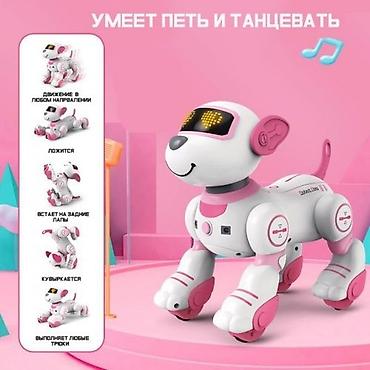 Собачка Щенок Дружок очень симпатичная, поднимает настроение, любит играть и слушать своего хозяина, умеет выполнять достаточно много команд. Есть кнопки для движения собачки, кнопки для пения, танцев и режим программирования.