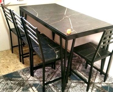 Кухонный обеденный комплект: стол + 4 табурета - Компактный прямоугольный стол из ЛДСП с кромкой по периметру. Удобная высота для ежедневных приемов пищи и работы. - Два табурета входя́т в комплек...