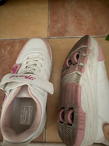 - Модель: кроссовки с интегрированными роликами (по два колеса в пятке каждой подошвы).