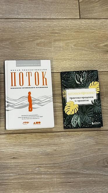 2) Михай Чиксентмихайи «Поток. Психология оптимального переживания» — классическая работа о состоянии потока, концентрации и счастье. Твердая обложка, издание с иллюстративными схемами и примерами применения. Цена на фото: 300 сом.
