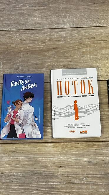 1) Али Хейзелвуд «Гипотеза любви» — роман о фальшивых отношениях двух молодых учёных, остроумный диалог, академическая среда, яркое оформление в твердой обложке. Цена на фото: 500 сом.