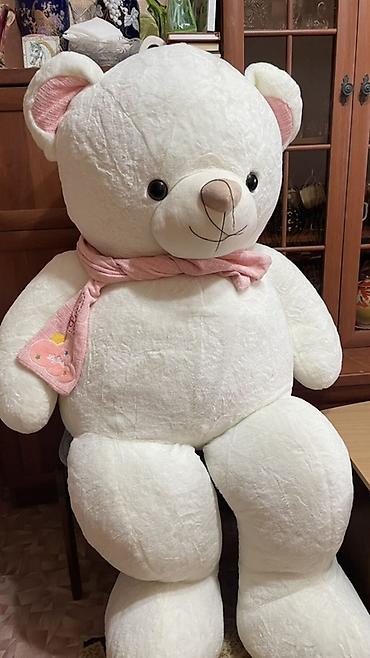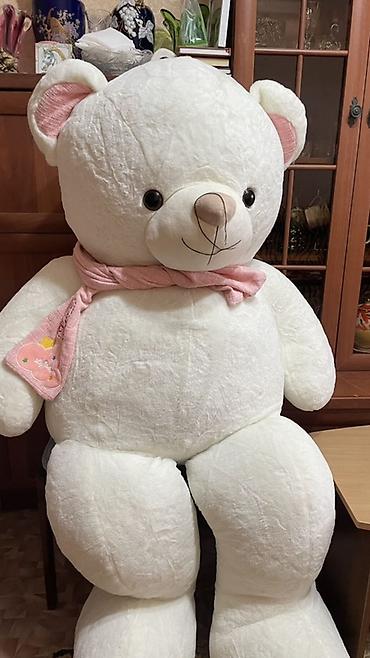 Большой плюшевый медведь белого цвета. Особенности: - Очень крупный размер (примерно с ростом маленького человека; подходит как напольная игрушка или декоративная подушка). - Мягкий плюш, приятный...