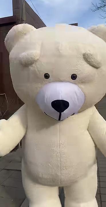- Образ: белый плюшевый медведь с крупной мордочкой, черным носом и улыбкой