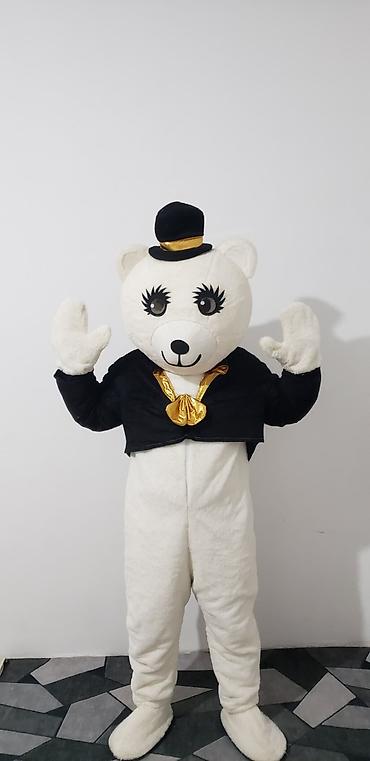 - Полный ростовой маскот: плюшевый белый медведь.