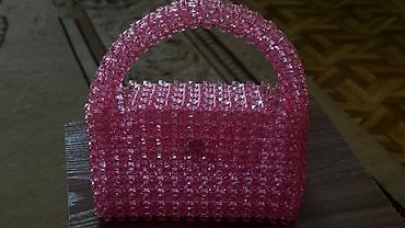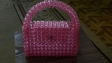 Розовая сумка ручной работы из пластиковых гранёных бусин.