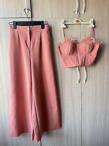 Женский комплект из топа-бюстье и широких брюк, цвет пудрово‑розовый. Красивая, «видная» двойка, можно носить и отдельно🙂 Носила 1 раз Размер: стандарт Качество: отличное