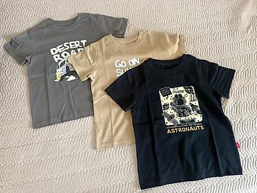 Набор совершенно новых детских 100% х/б футболок (3 шт.) с принтами. На рост 100-110. Цена за 3 футболки-1000 сомов