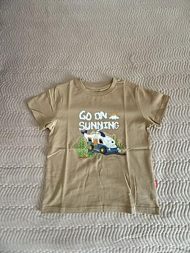 Детские футболки, х/б, рост 116–122 см. Куртки/ шорты/ плавки Модели и детали: - Мятная с ярким принтом серф‑досок сбоку и надписью “The best summer ever”. - Белая с голубой окантовкой горловины и...