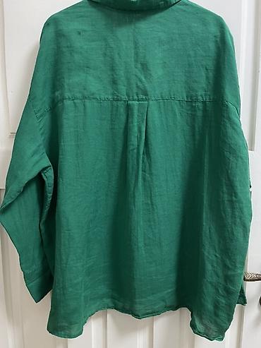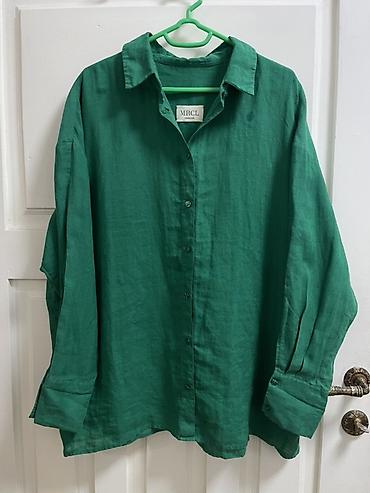 Льняная рубашка MRCL HANDMADE, изумрудно‑зеленый цвет.
